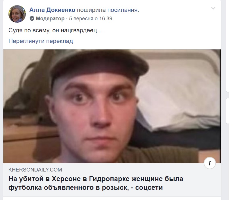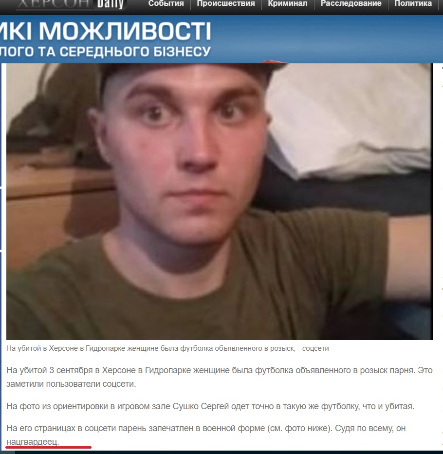 Гучне і жорстоке вбивство у херсонському Гідропарку, яке сколихнуло херсонців, породило кілька фейків та маніпуляцій у місцевих виданнях, зокрема навіть про причетність Нацгвардійця. Причому жодних доказів тому не було – тільки припущення, які втім також неприємні.