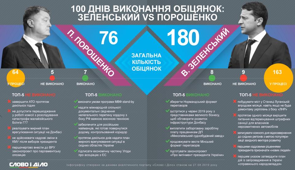 Наші колеги зі Слово і Діло підрахували обіцянки теперішнього і попереднього президентів, а також топ-5 виконаних і невиконаних.
