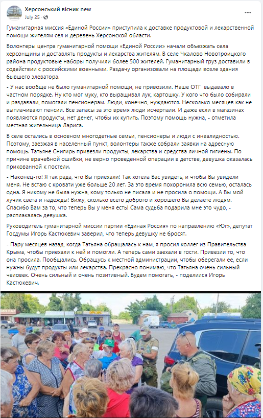 Херсон і Херсонщина залишаються вже більше 7 місяців тимчасово окупованим, зникають безслідно люди, або їх потім знаходять вбитими, повішеними (як Тетяну Мудренко зі Скадовська, яку задушили і повісили для огляду місцевих біля відділку “поліції”, в якому працюють здебільшого колаборанти). В одному з березневих відеозвернень Стремоусова, яких він на день може зробити десяток, на фоні було чутно жіночі крики, які схожі на крики при згвалтуванні. “Різні процеси у нас тут відбуваються одночасно,” — заявив Стремоусов під час ефіру і просто прикрив двері. Багатодітний батько, дружина якого знову вагітна, без вагань пустив “русскій мір” на Херсонщину. Адже рублі не пахнуть, а п’ятеро діточок треба годувати?